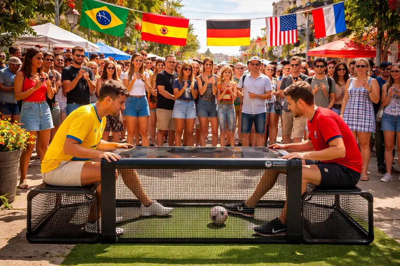 - The ball stays under the table to contain the action. Crowds can press in close to the energy without ever disrupting the play.